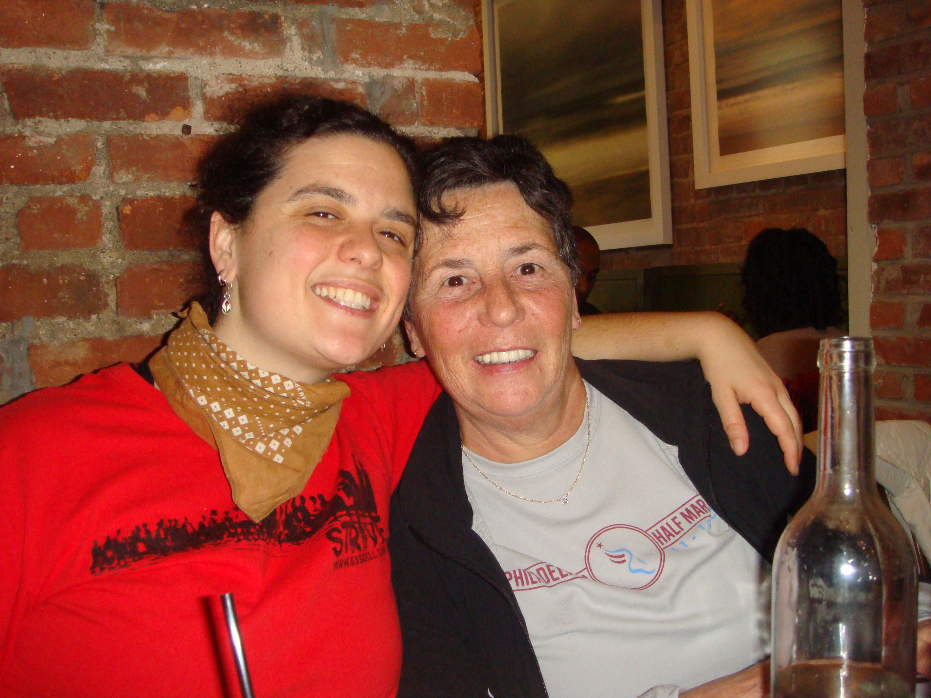 As we proceeded up the southwest pavement, behold, there was Audrey with a wonderful smile and a “Rocky” stance and a cheer. I love Audrey, a one of a kind southern lady with a mind of her own and a passion for living. We hugged. I felt great–what better gifts could one have than friends. We rounded the west of the park to Grand Army Plaza, passed the farmers market busy with everyone stocking up with fresh veggies, fruits and organic turkeys for our “thanks day”. Jodi and Audrey bought some apples, Ruth headed back to the synagogue; Nina on a bench waiting for Mikey and Meredith and I kept moving so my legs wouldn’t cramp.