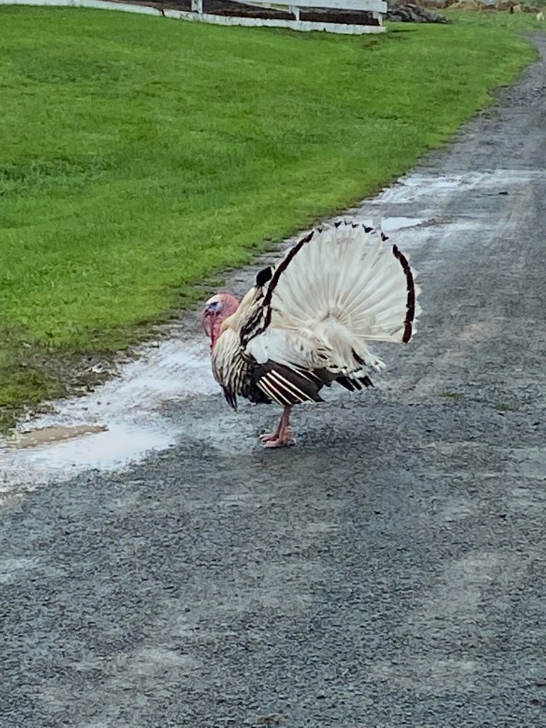 My first thought: don’t look around too much. My experience when looking toward the ground is seeing a dead bird or animal here or there. Not cool, you seem to think of it for the next mile or two. Thoughts invade: should I have stopped and buried that poor bird, OMG what an ugly possum, I hate them. Or, shit that was someone’s cat. So my thoughts were don’t focus on the dead things you see. Well about a minute after having that thought, I turned right to see two turkeys–alive. Scared the shit out of me because I didn’t expect them, nor was I looking around. Almost tripped over one. They certainly were not afraid of me. Remember I live in the city. These two birds were big and just walking down the street–a four lane big street. Taking a trot I imagine. I laughed out loud and continued. A good walk, haven’t calculated the mph hour because I don’t want to focus on the speed yet. Need to do the distance.